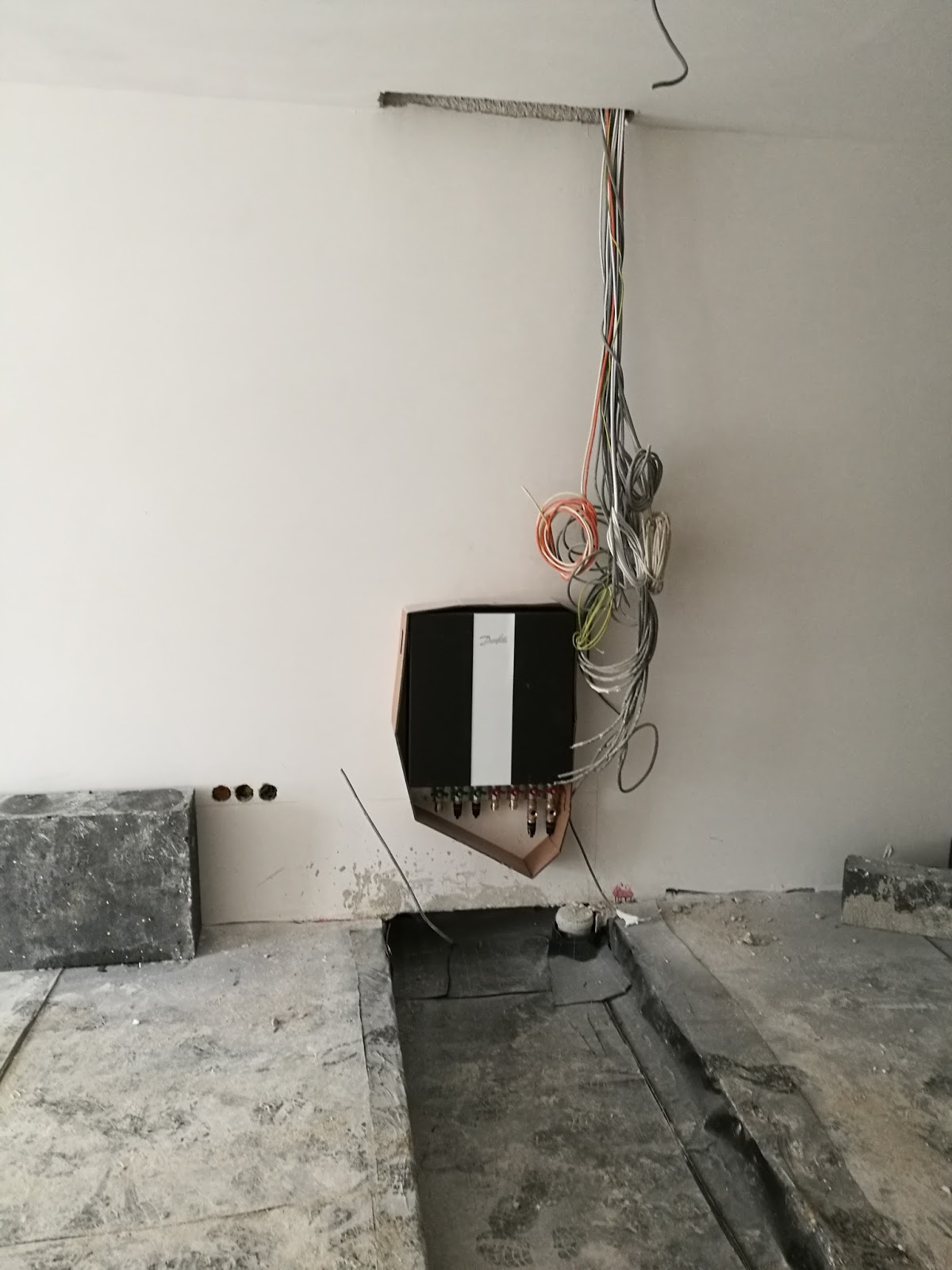 Der Installateur hat begonnen, in der zweiten Zeile erste Installationsvorbereitungen zu treffen.